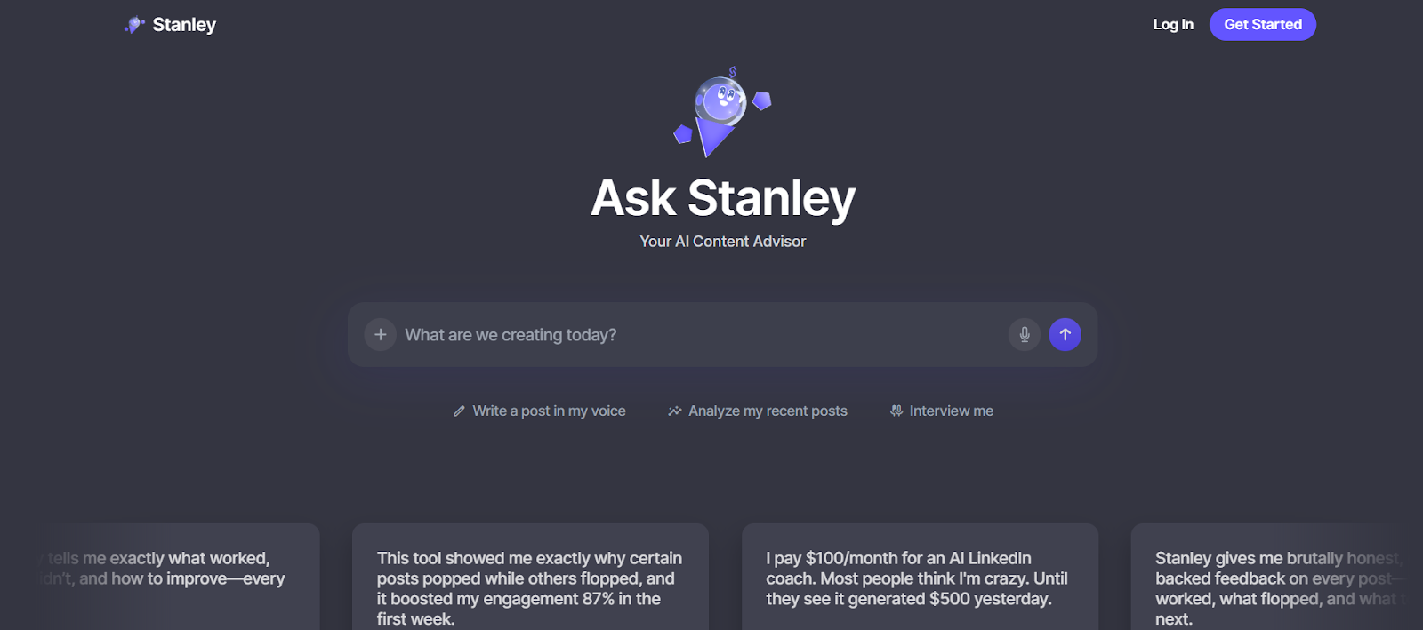Stanley is built to help you stay consistent on LinkedIn by solving one simple problem: what to post. It analyzes your top-performing posts to understand your voice, then suggests content ideas that align with how you naturally write.